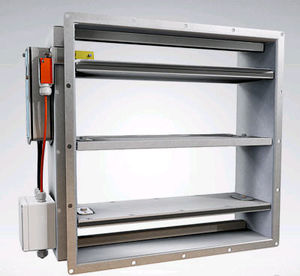 Fire Dampers are required by all building codes to maintain the required fire resistance ratings of walls, partitions, and floor when they are penetrated by air ducts or other ventilation openings. This is a duct mounted fusible link multi-blade fire damper with 3V style blades and spring closure and has also been qualified for dynamic closure in emergency fire situations. It is rated for airflow in either direction.